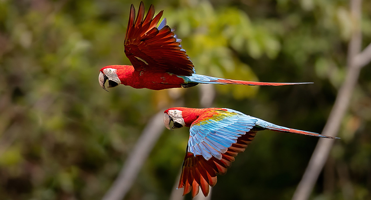 Macaws are large birds known for their vibrant plumage and intelligence. In Manu National Park, you can find several species, such as the scarlet macaw, the blue-and-yellow macaw, the military macaw, etc. These majestic birds are not only a visual delight but also play a crucial role in the ecosystem by aiding in seed dispersal.